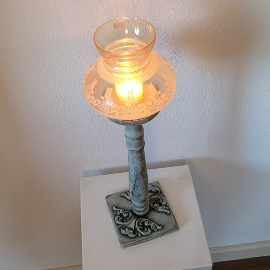 Kerzenständer aus Stuhlbein mit Glas