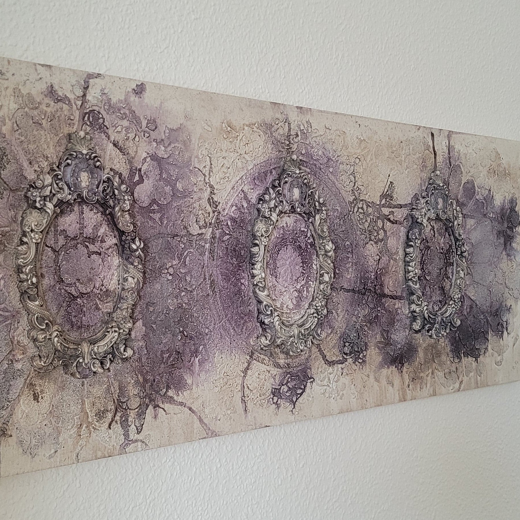 Drei kleine Bilderrahmen treffen auf modernes Design – dieses Wandbild bringt Struktur und Farbe in jeden Raum. Das dezente Lila-Grau-Muster schafft eine beruhigende Atmosphäre. Perfekt für Wohnzimmer, Schlafzimmer oder Büro. Ein verspieltes Statement-Piece, das Persönlichkeit zeigt und sich mühelos in verschiedene Einrichtungsstile einfügt.