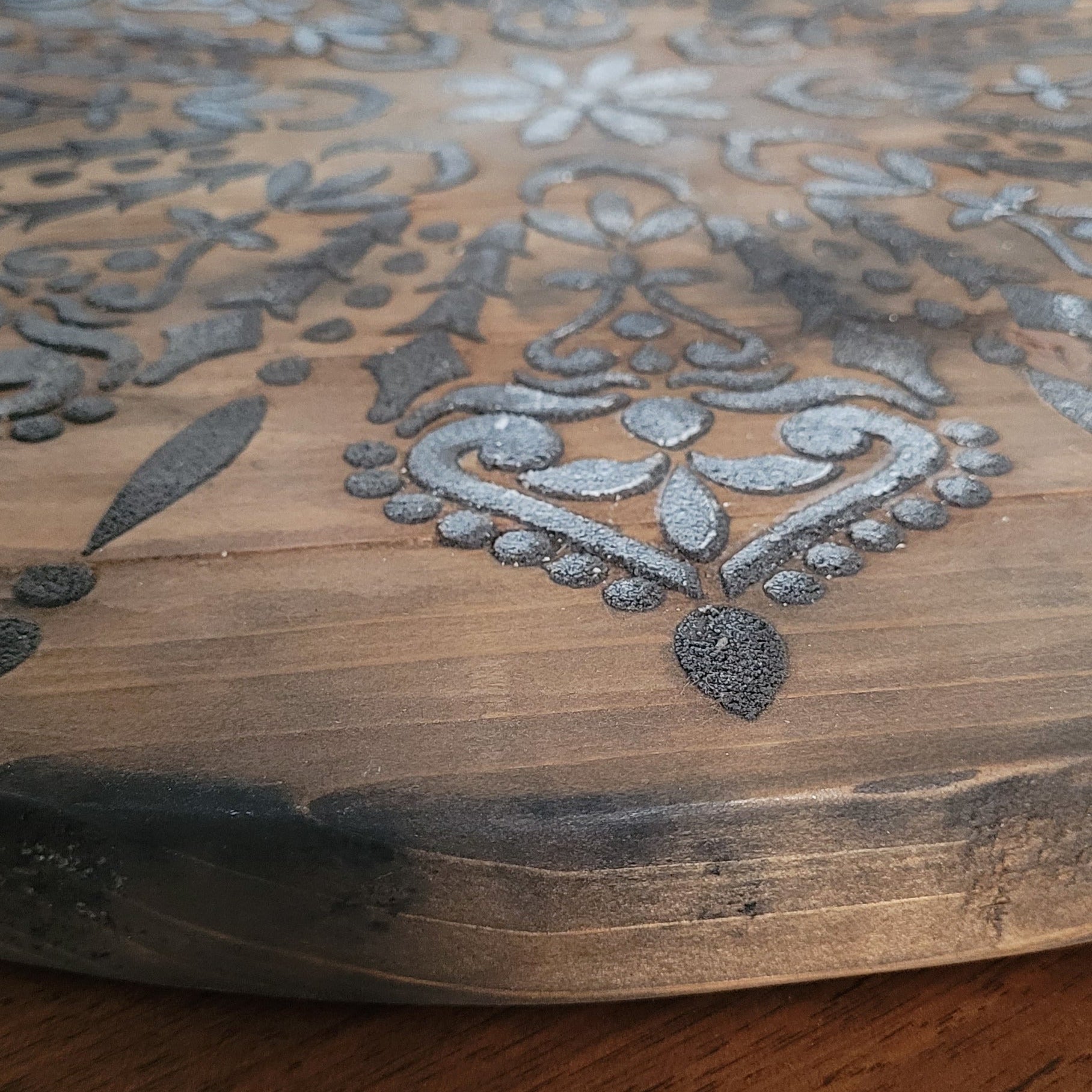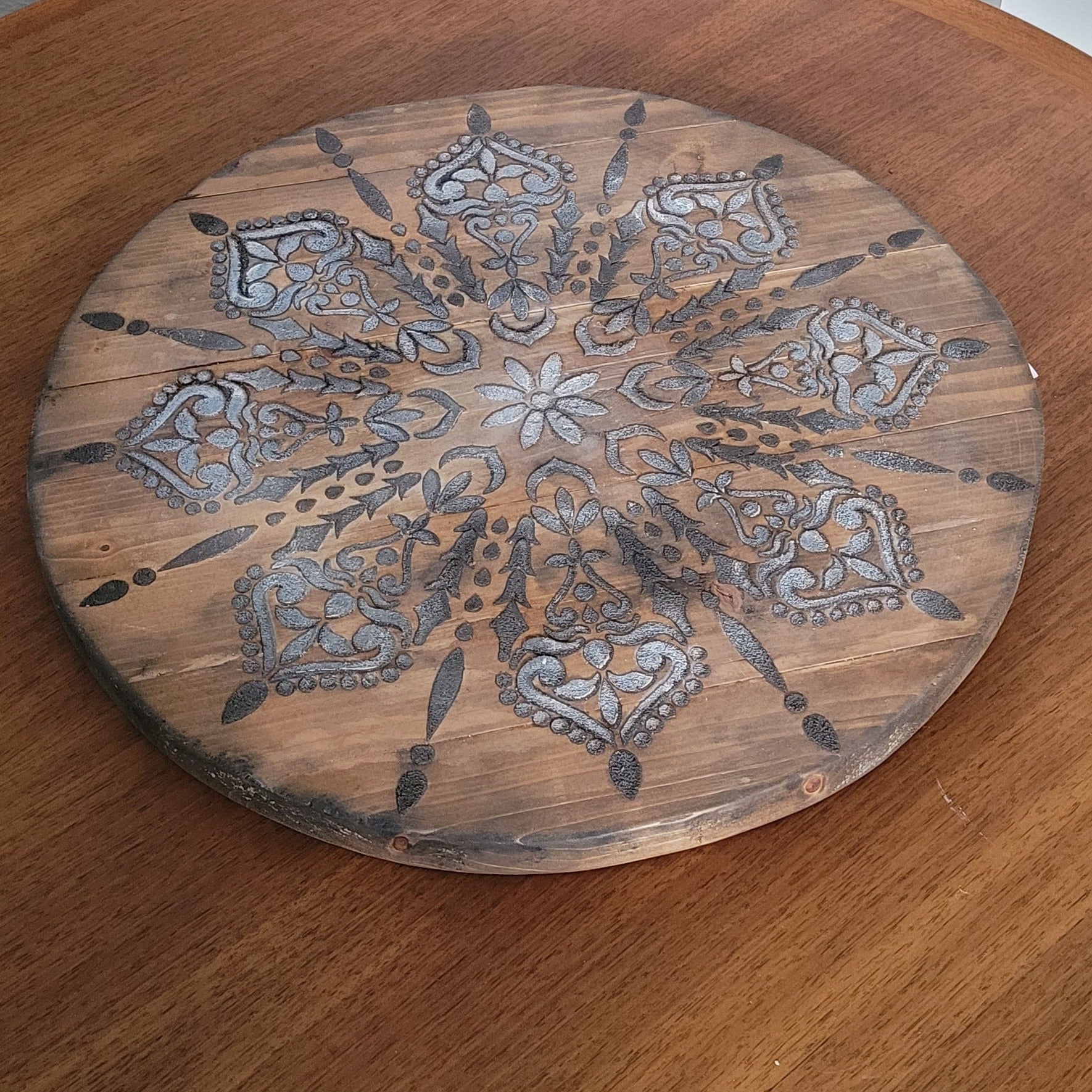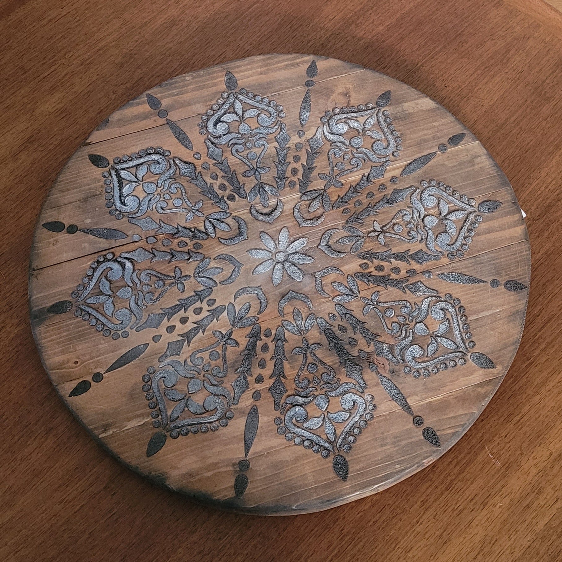 Dekobrett rund mit Strukturmandala – das perfekte Accessoire für alle, die ihre Räume mit einem Hauch von Achtsamkeit und Stil aufpeppen möchten. Das runde Design mit seinem faszinierenden Strukturmandala-Muster schafft einen visuellen Blickfang auf jedem Tisch, Regal oder Sideboard. Ob als dekoratives Element, zum Arrangieren von Kerzen und kleinen Objekten oder einfach als kunstvolles Statement – dieses Dekobrett bringt Ruhe und Eleganz in dein Zuhause. Ein wunderbar vielseitiges Stück, das Funktionalität und ästhetische Schönheit vereint.