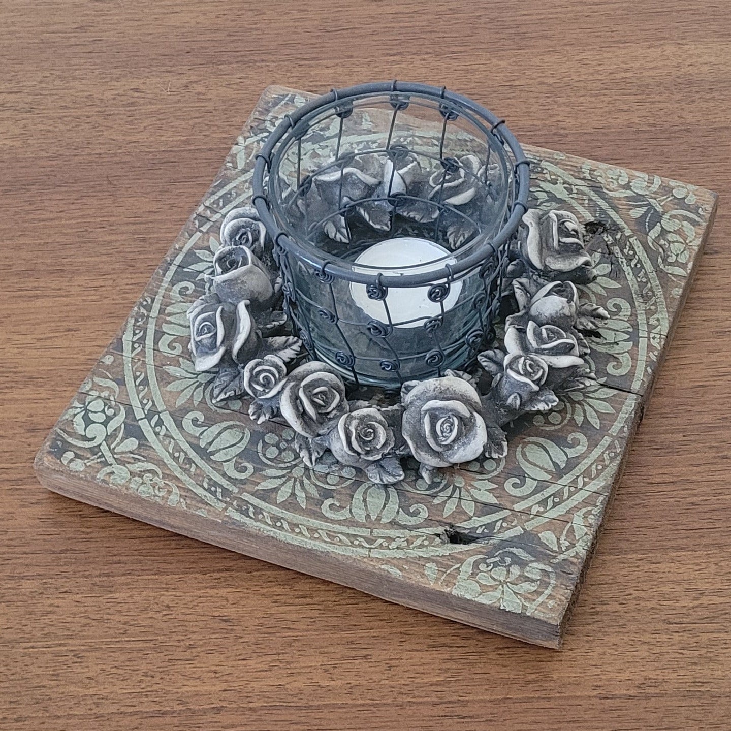 Verwandle dein Zuhause in einen Ort der Ruhe und Schönheit. Dieses charmante Set kombiniert ein dekoratives Kerzenglas auf einem natürlichen Holzbrett mit einem eleganten Rosenkranz – perfekt für Momente der Entspannung oder als durchdachtes Geschenk. Die liebevolle Kombination schafft eine gemütliche Atmosphäre und lädt zum Innehalten ein. Ideal für dein Schlafzimmer, Wohnzimmer oder als spirituelle Dekoration.