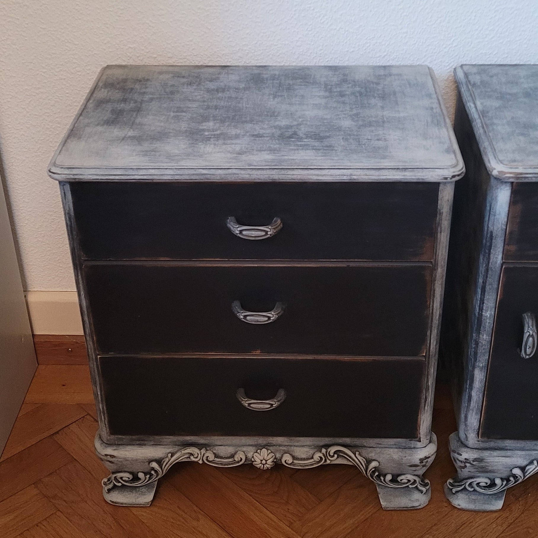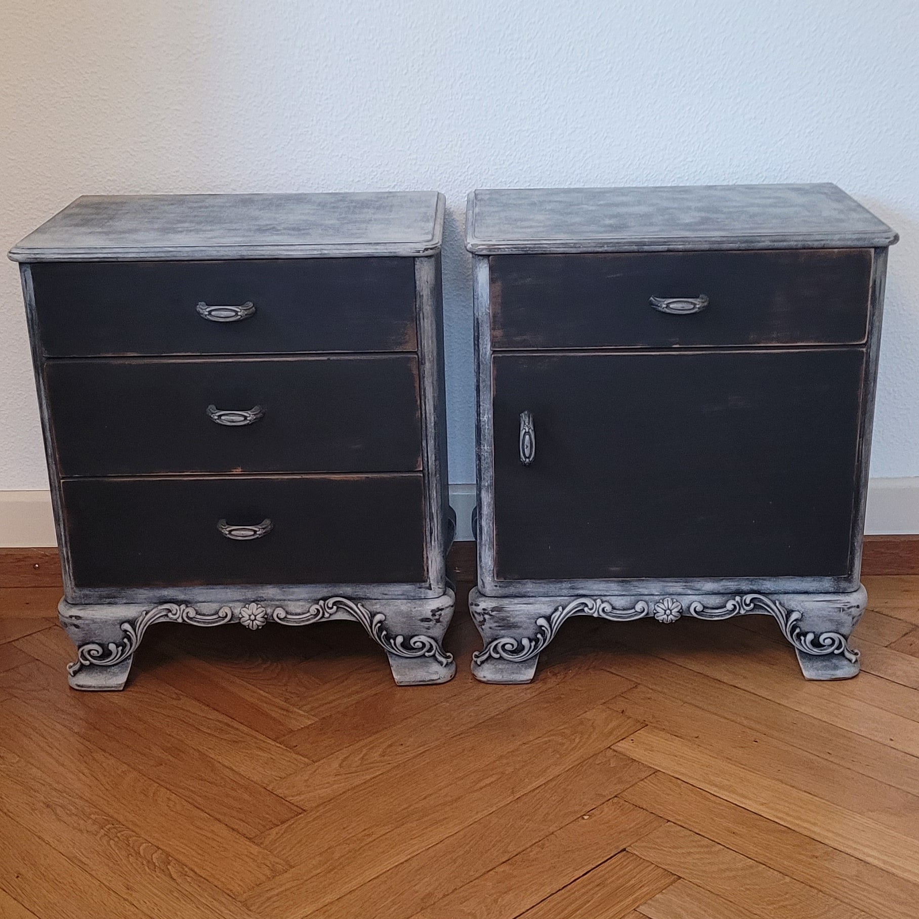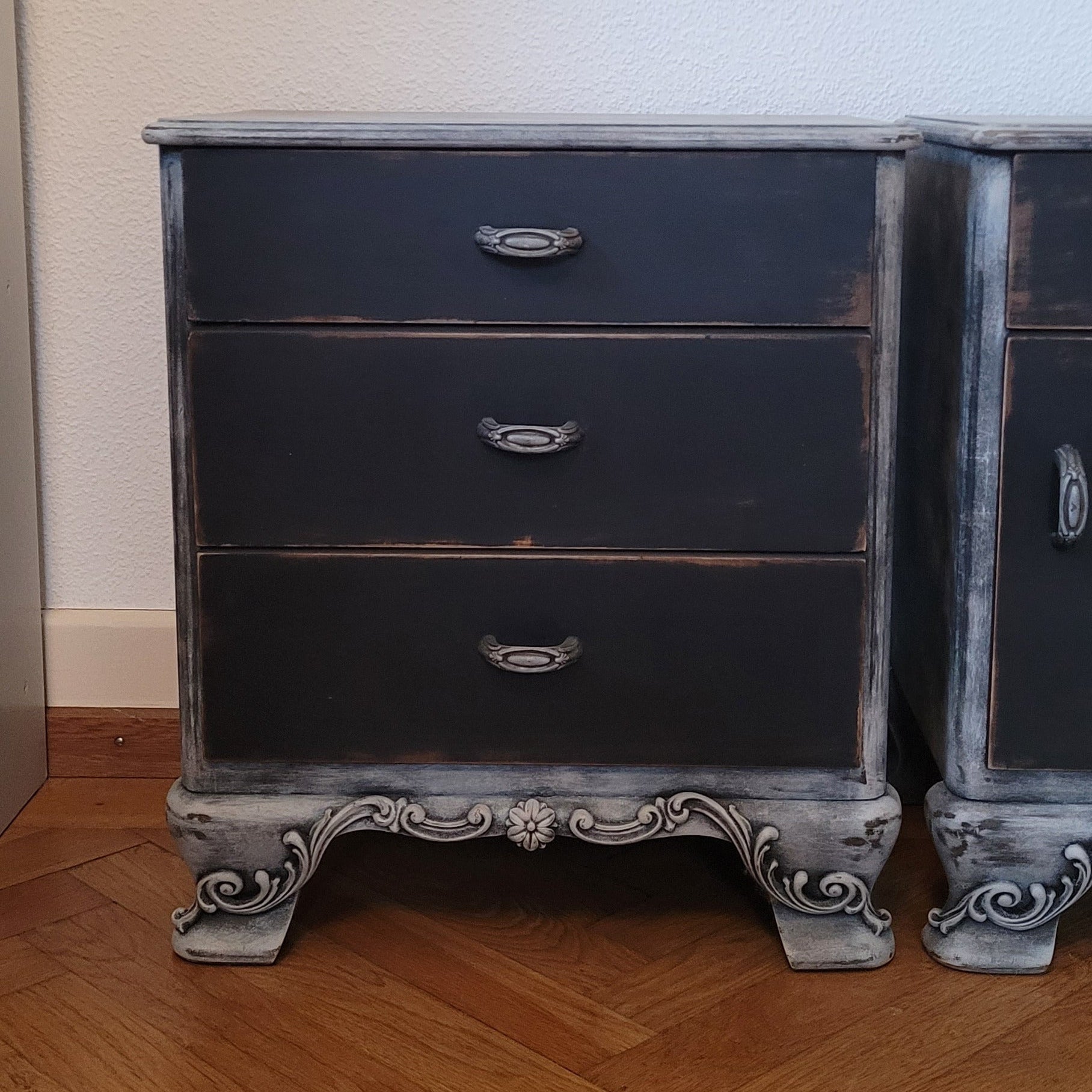 Zwei elegante Nachttische im angesagten Schwarz-Grau-Mix – das Set "Noah" bringt Ruhe ins Schlafzimmer. Mit feinen Ornamenten verziert, schaffen diese Tische eine stilvolle Atmosphäre neben dem Bett. Perfekt für alle, die Funktionalität und Design lieben: ausreichend Platz für Lampe, Buch und Wecker. Ein Hauch von Eleganz, der deinen Schlafbereich aufwertet – ohne dabei zu ernst zu wirken.