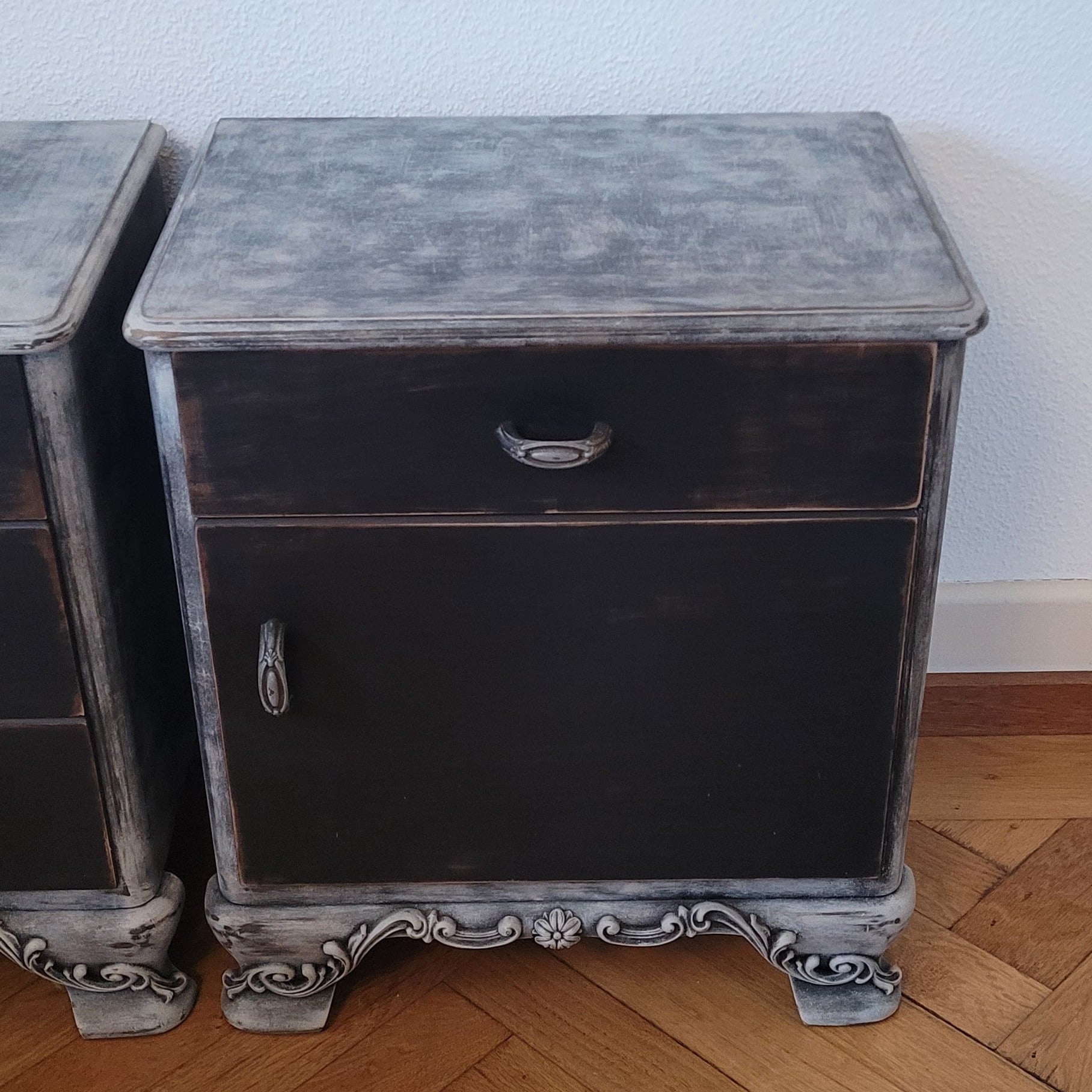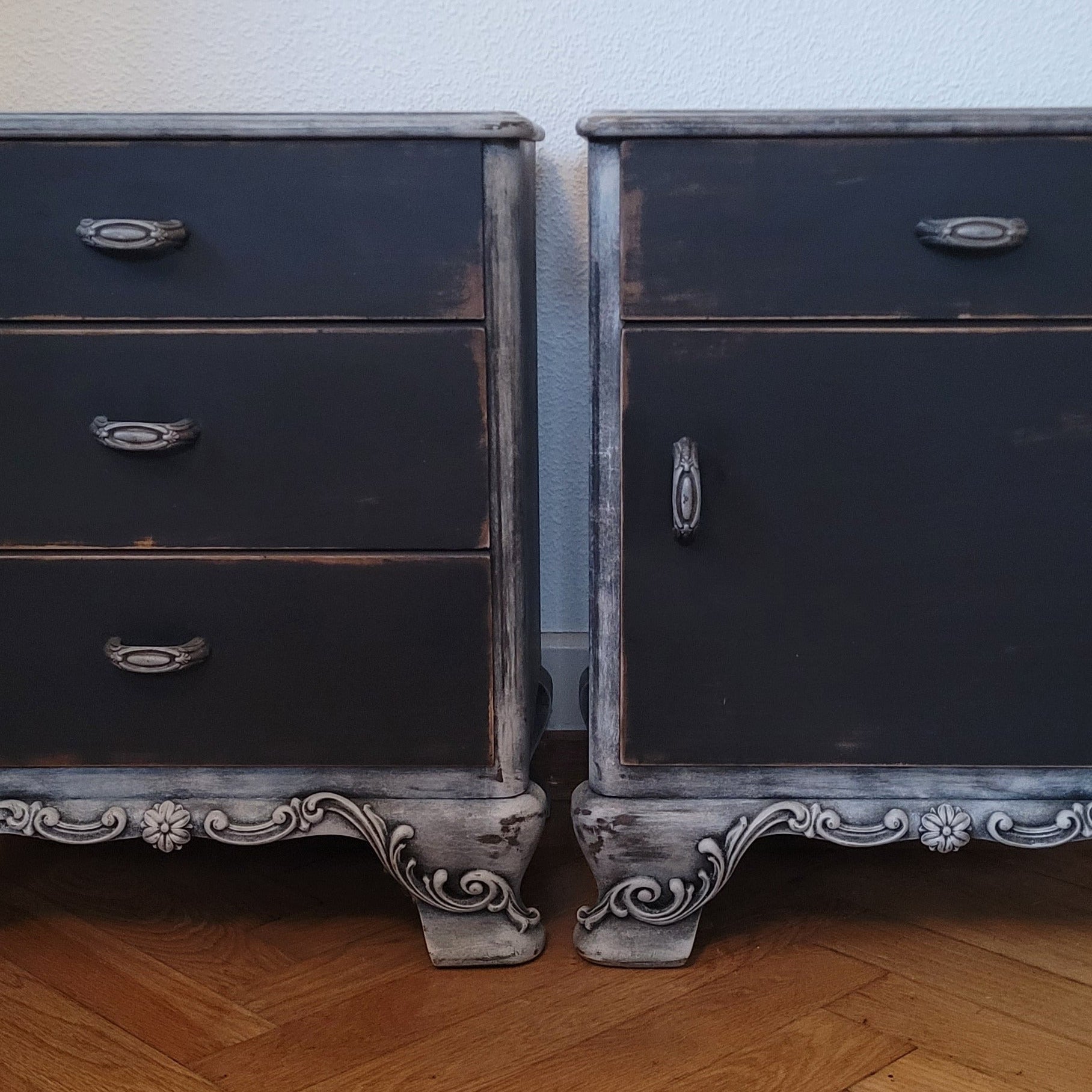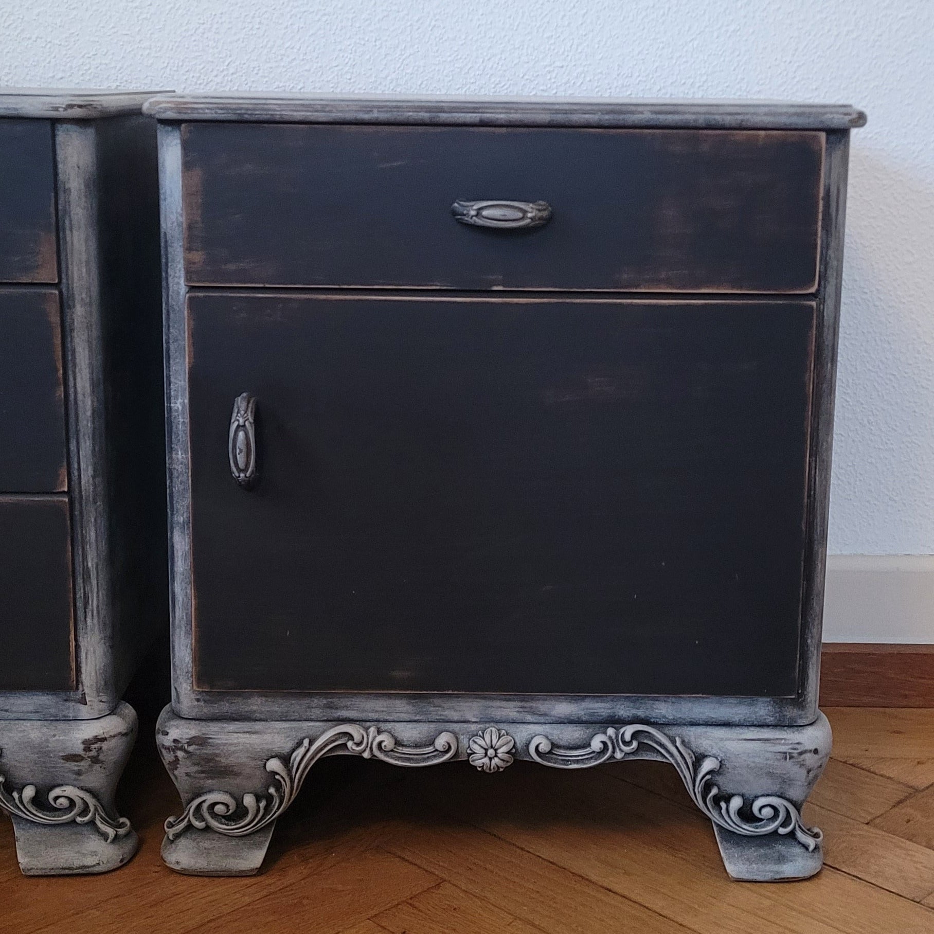Zwei elegante Nachttische im angesagten Schwarz-Grau-Mix – das Set "Noah" bringt Ruhe ins Schlafzimmer. Mit feinen Ornamenten verziert, schaffen diese Tische eine stilvolle Atmosphäre neben dem Bett. Perfekt für alle, die Funktionalität und Design lieben: ausreichend Platz für Lampe, Buch und Wecker. Ein Hauch von Eleganz, der deinen Schlafbereich aufwertet – ohne dabei zu ernst zu wirken.