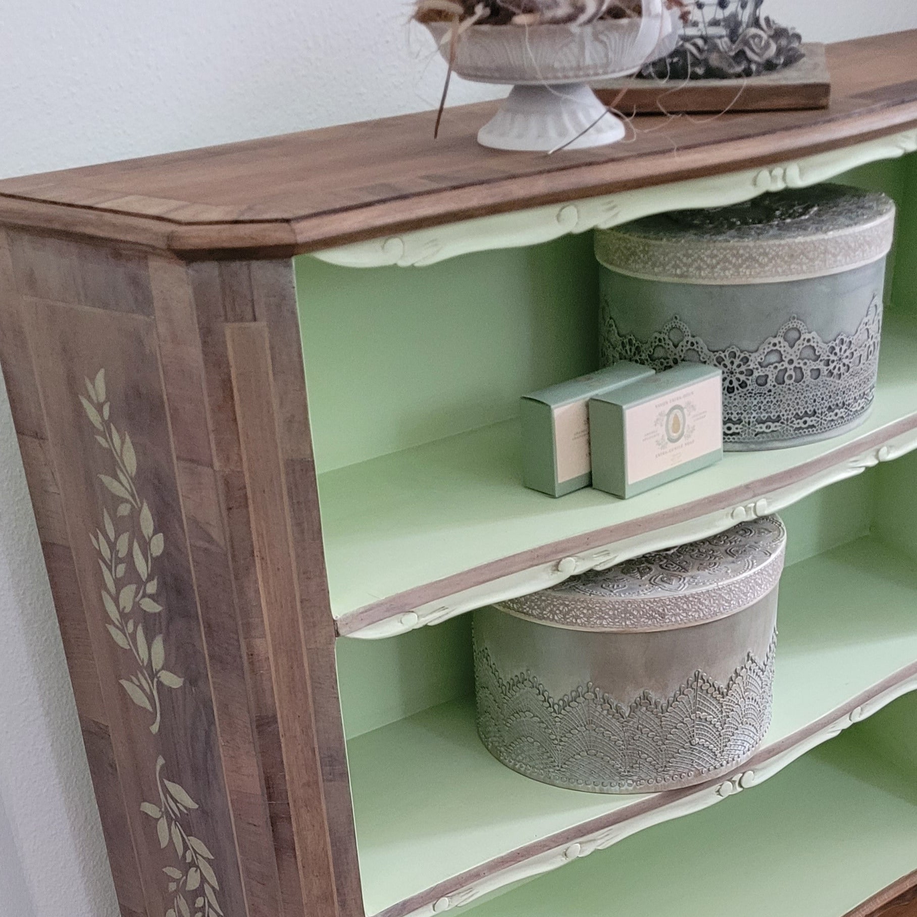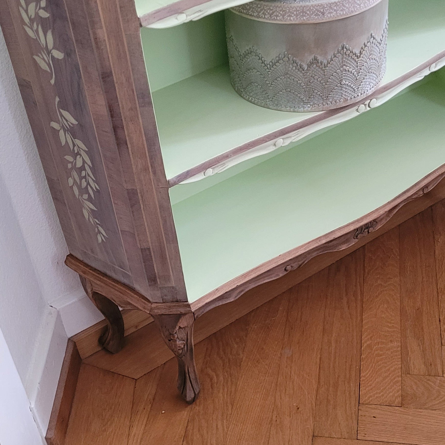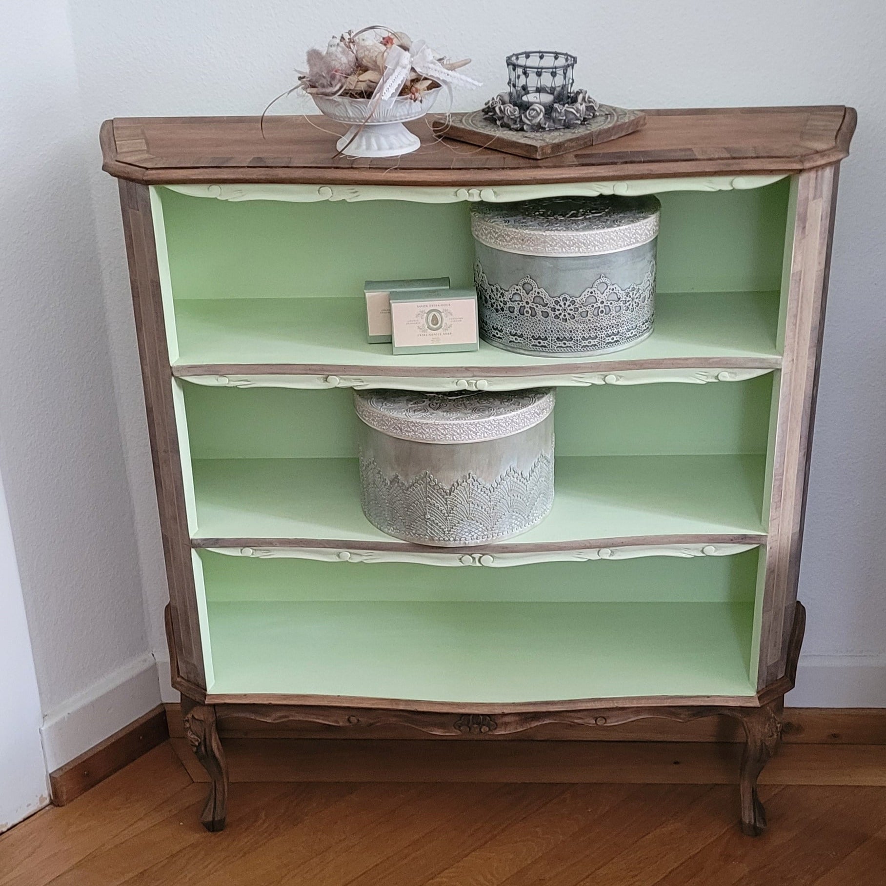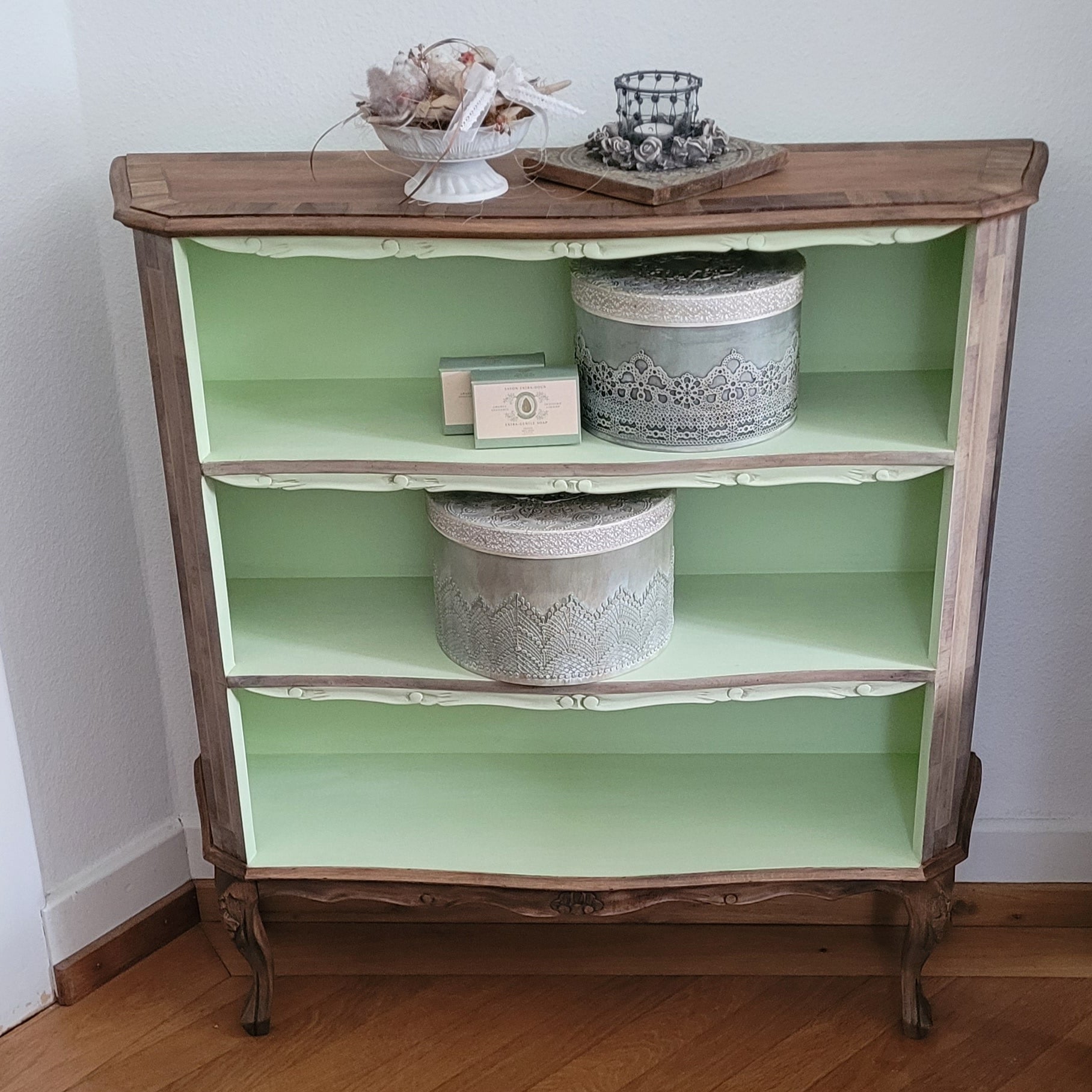 Ein wunderschönes, altes Möbel. Innen gestrichen in "Lime Pulp", Holz abgeschliffen, gewachst mit "Jacobean" und mit Hartwachsöl transparent, alles von Cottage Colours, behandelt.