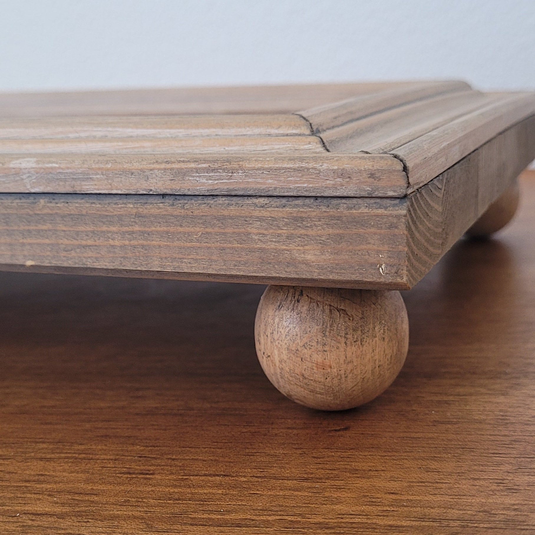 Verkauft Elegantes Tablett aus Holz, grau, mit feinen Zierleisten und standfesten Kugelfüssen – das perfekte Accessoire für stilvolle Momente. Ob zum Dekorieren mit Kerzen oder als dekoratives Highlight auf dem Sideboard: Dieses Tablett verbindet klassisches Design mit praktischer Funktionalität. Die robusten Kugelfüsse sorgen für sicheren Stand, während die zierlichen Leistendetails dem Ganzen einen Hauch von Eleganz verleihen. Ein zeitloses Stück, das in jedem Zuhause seinen Platz findet.