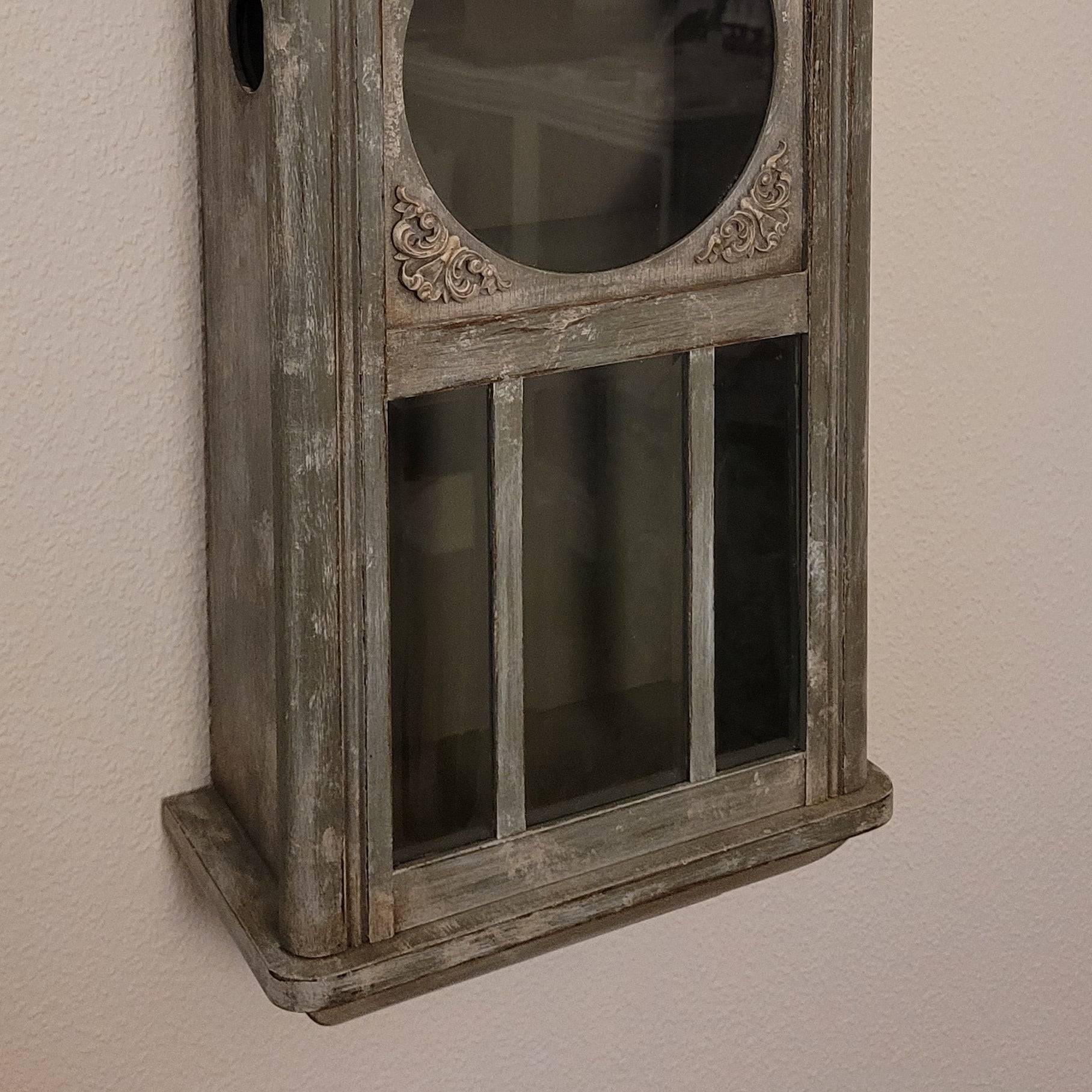 Dieses charmante Uhrenschränkchen "Viona" ist ein umgebauter Klassiker mit Charakter. Die elegante Erscheinung in Olive Gold mit feinen Ornamenten schafft eine wunderbar nostalgische Atmosphäre – perfekt, um deine Dekostücke oder kleine Schätze stilvoll in Szene zu setzen. Ein verspieltes Stück, das deinem Zuhause einen Hauch von Vintage-Eleganz verleiht und garantiert zum Gesprächsstoff wird.